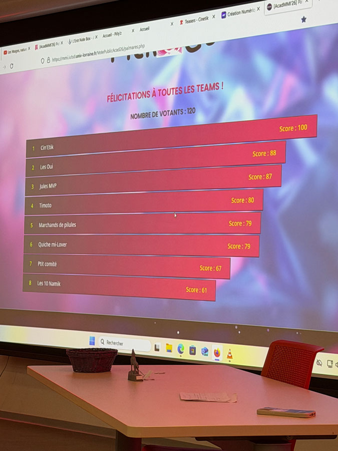 Tous les projets ont été présentés avec sérieux, enthousiasme et une vraie volonté de mobiliser les compétences acquises en BUT MMI : conception, design, communication, développement, storytelling, UX… Un grand bravo aux étudiants de 2ᵉ année pour la qualité de leurs propositions et de leurs présentations.