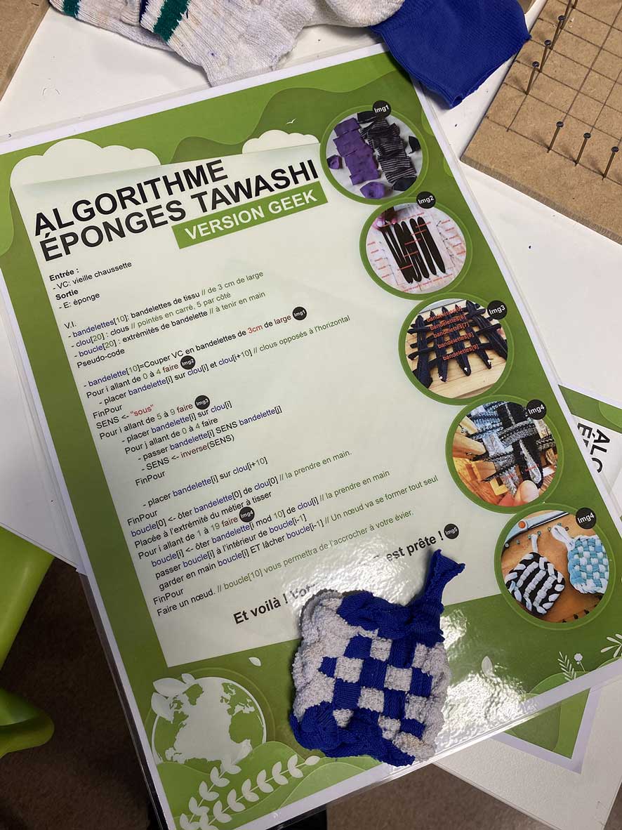 – des éponges tawashi avec de vieilles chaussettes