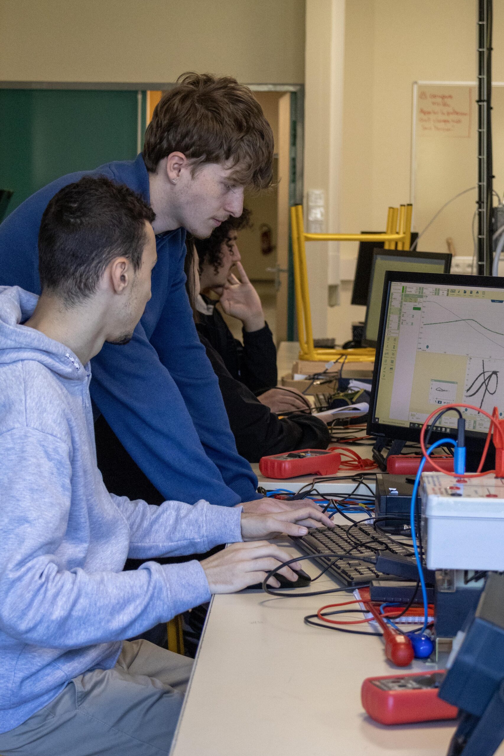 En binôme, ils alternent entre théorie et manipulations pratiques pour découvrir son fonctionnement, ses applications et son rôle dans les réseaux électriques. Grâce à ce TP d’électrotechnique, les étudiants continuent de renforcer leurs compétences et de se préparer à leur futur métier !