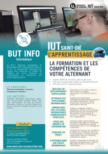 Le B.U.T. (Bachelor Universitaire de Technologie) INFO (Informatique) est le nouveau diplôme de référence des IUT. Il forme en 3 ans un professionnel répondant aux besoins des entreprises en matière de maîtrise des outils modernes de l’informatique et d’ouverture aux technologies de pointe.