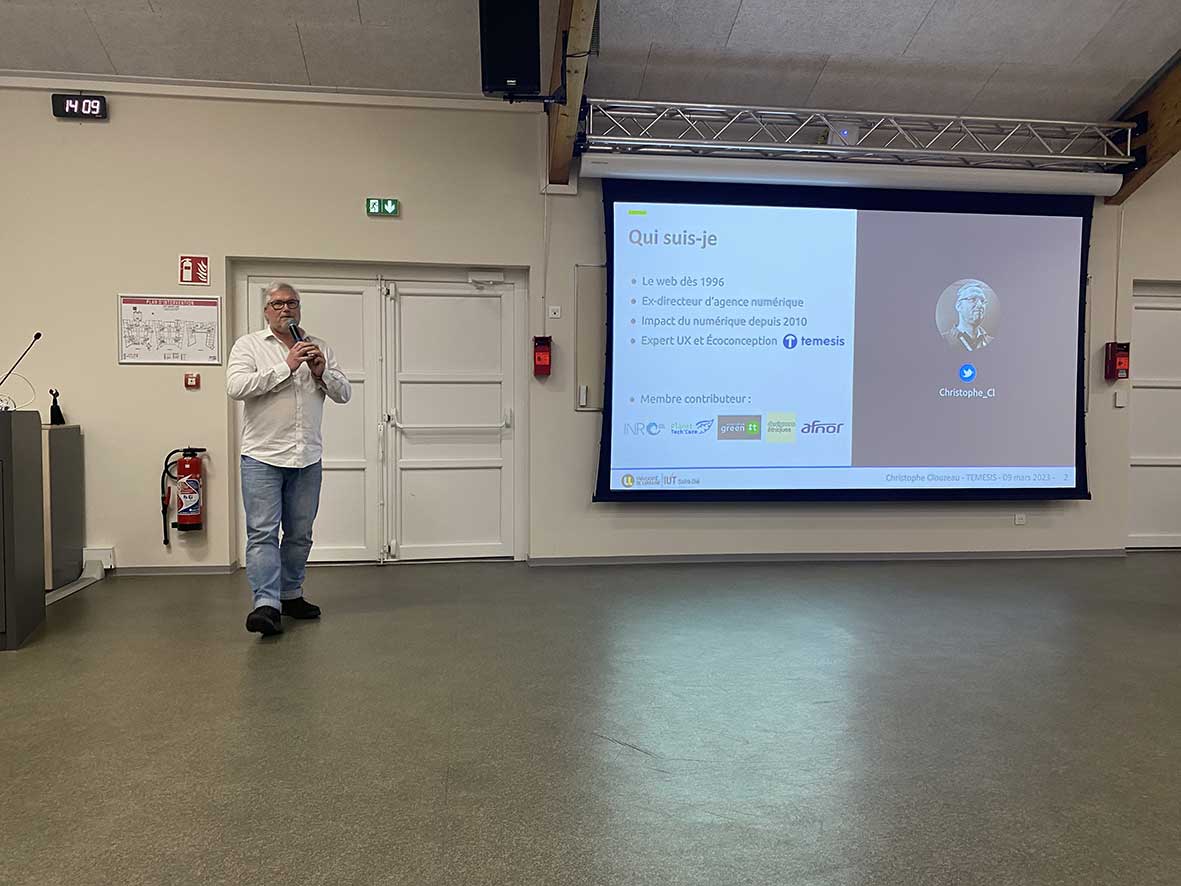 - La première, les participants ont pu écouter la présentation de Christophe CLOUZEAU – Expert UX et écoconception numérique.