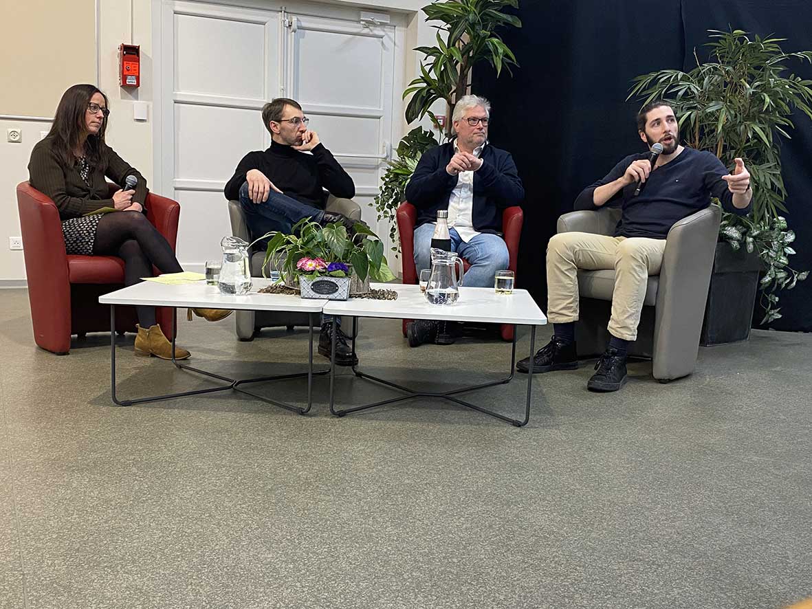 La conférence s’est ensuite poursuivie avec un débat table ronde autour du sujet de l’écoconception dans les métiers du numérique avec Mr Clouzeau – Expert UX, Mr Villard, chercheur au laboratoire LORIA et Joffrey Mougel UX Researcher & Designer, puis d’une session de questions-réponses pour permettre aux participants de poser des questions et d’approfondir leurs connaissances sur le sujet.