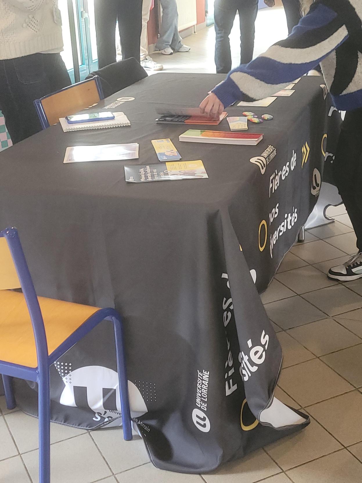 Installée dans le hall de l’IUT, l’équipe de la mission EDI, accompagnée d’un psychologue, est venue à la rencontre des étudiant·e·s pour échanger autour de thématiques essentielles : la lutte contre les discriminations et les violences sexistes et sexuelles.