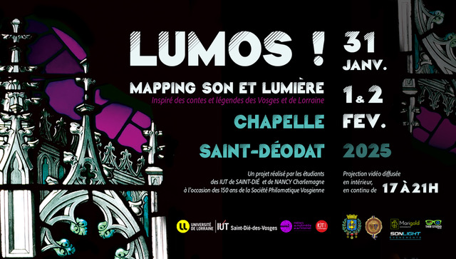 Ne manquez pas cette occasion pour découvrir un projet local qui associe tradition, innovation et créativité. LUMOS vous invite à un voyage captivant au cœur des légendes vosgiennes, en partie réalisé par les étudiants de l’IUT de Saint-Dié.