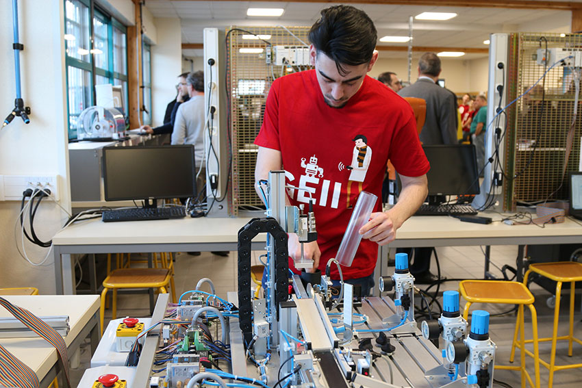 La plateforme « Industrie 4.0 », inaugurée en 2019, initie les étudiants aux différents aspects du métier d’automaticien en relation avec les évolutions liées au déploiement de la robotique et des équipements connectés.