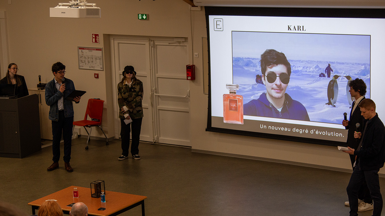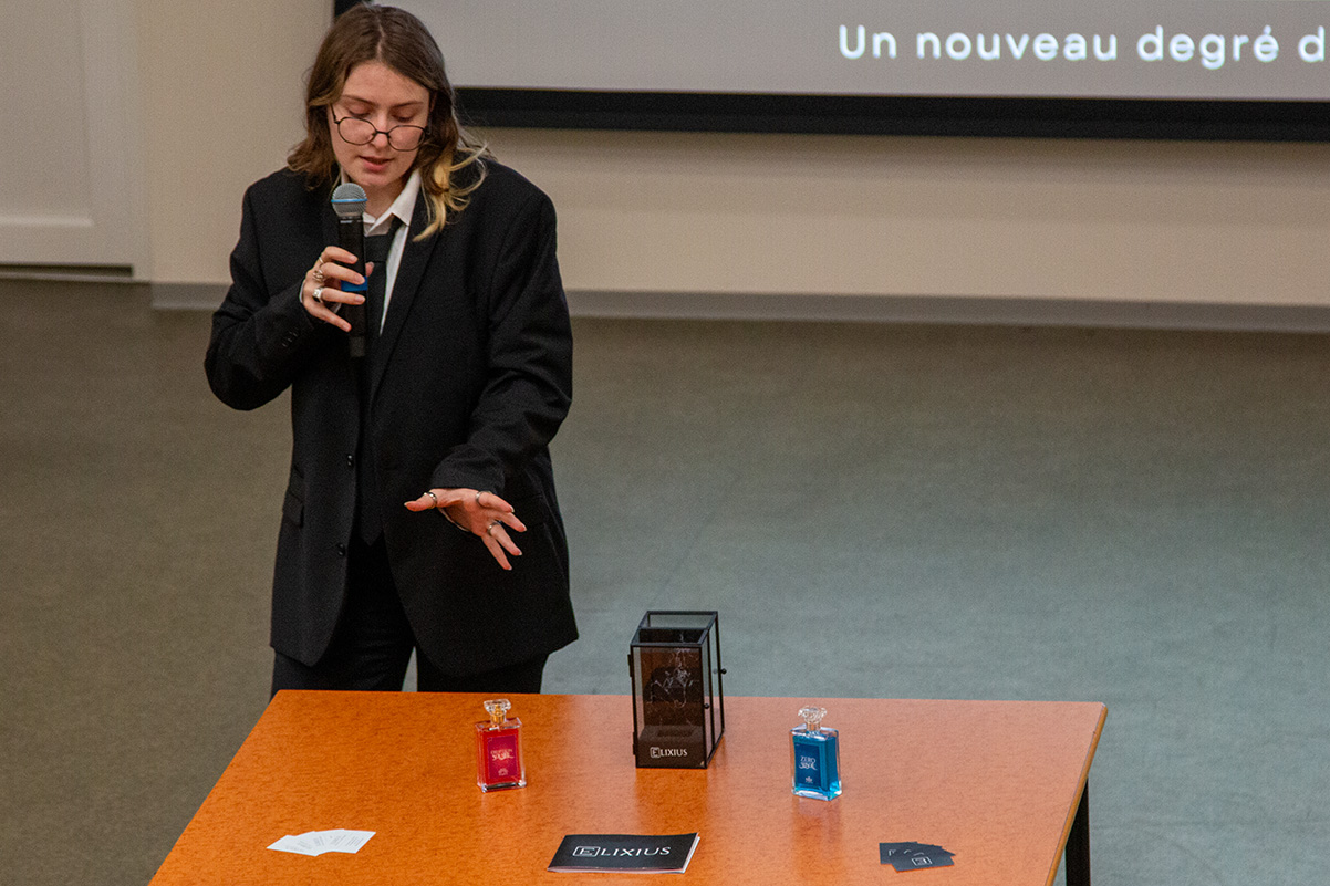 Les étudiants ont partagé leurs inspirations et les défis qu’ils ont rencontrés pendant la réalisation du projet. Concernant l’idée du projet, ils ont expliqué : « Comme le thème imposé était ‘fragrance disruptive’, nous sommes directement partis sur l’idée d’un parfum, puisque c’est à cela que l’on pense en premier. Cependant, nous avons revisité le concept même de parfum en ajoutant l’idée des sensations thermiques qui varient selon la saison. »