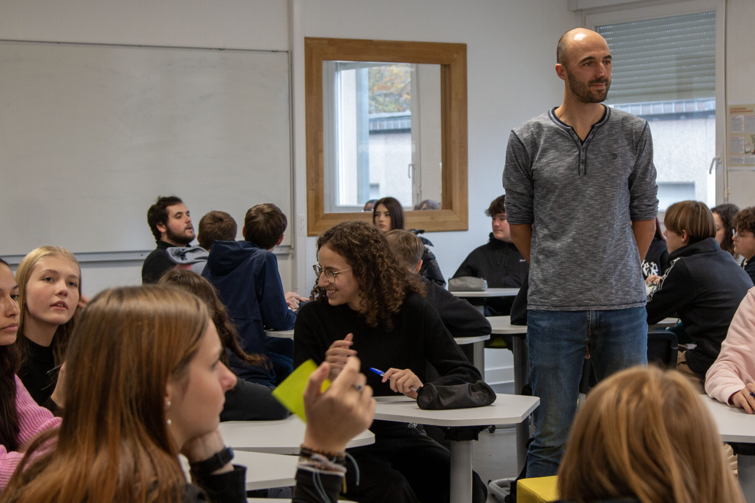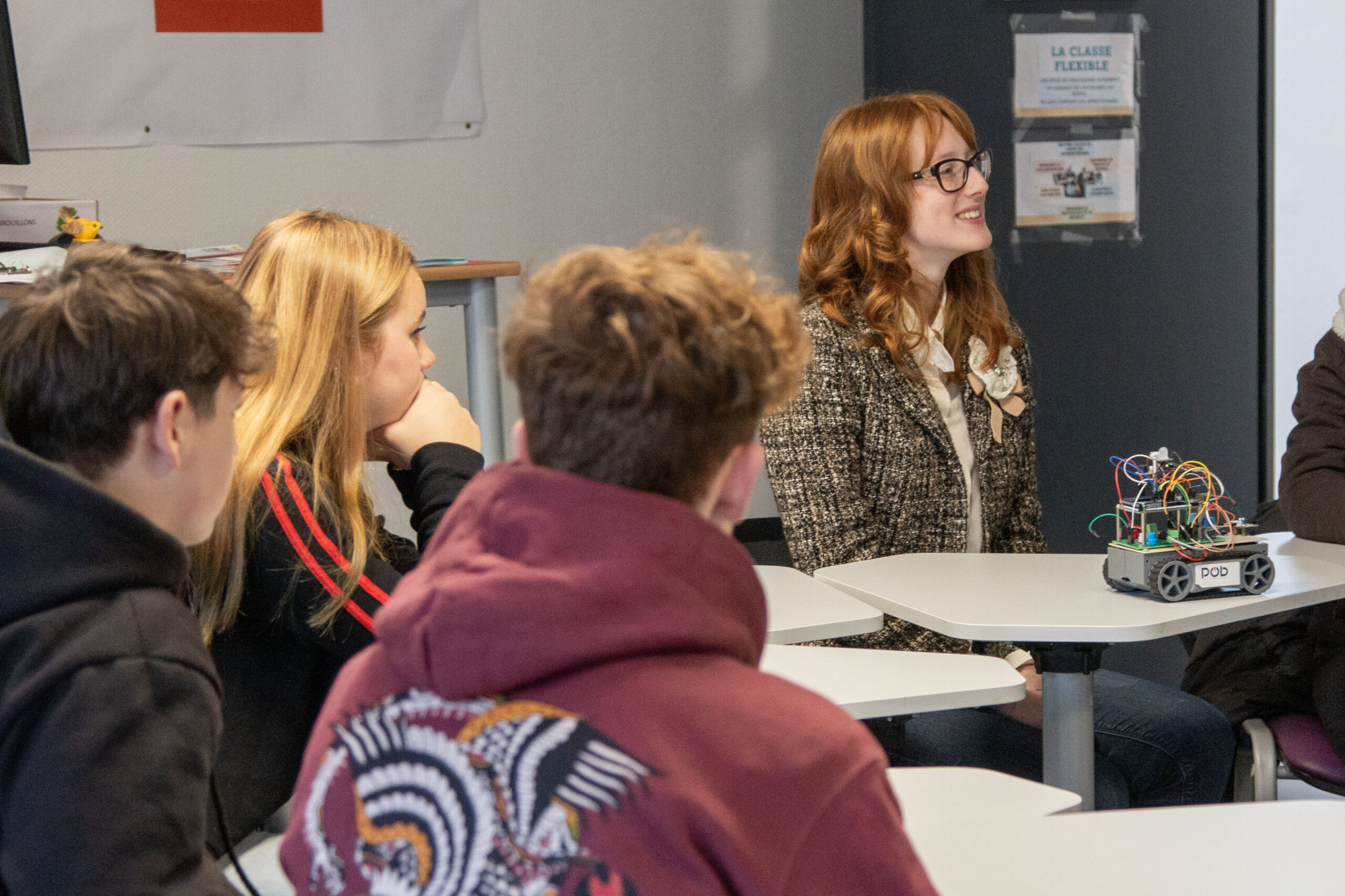 Les interventions ont pris la forme d’ateliers en petits groupes, permettant des discussions plus personnalisées avec les lycéens. Chaque intervenant disposait de 10 minutes pour partager leur parcours, leurs questionnements lorsqu’ils étaient eux aussi lycéens, et l’évolution de leurs compétences au fil du temps. Une attention particulière a été portée à la présentation des réalités du métier, illustrées par une journée idéale et une journée plus complexe, offrant une vision équilibrée du monde du travail. Les élèves ont ensuite pu poser des questions aux intervenants et noter leurs impressions sur des post-it, afin de créer une fresque murale collective à la fin des interventions.