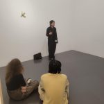 Guidés par une médiatrice passionnée, les étudiant·es ont exploré l’exposition temporaire « Dimanche sans fin. Autour des œuvres de Maurizio Cattelan ». Cette exposition interroge la notion de dimanche, un thème en apparence anodin mais qui révèle des enjeux sociaux, politiques et esthétiques bien ancrés dans notre société. Grâce à des explications accessibles et à une interprétation vivante, la guide a su rendre l’art contemporain compréhensible, presque familier, en montrant comment ces œuvres résonnent avec notre quotidien.