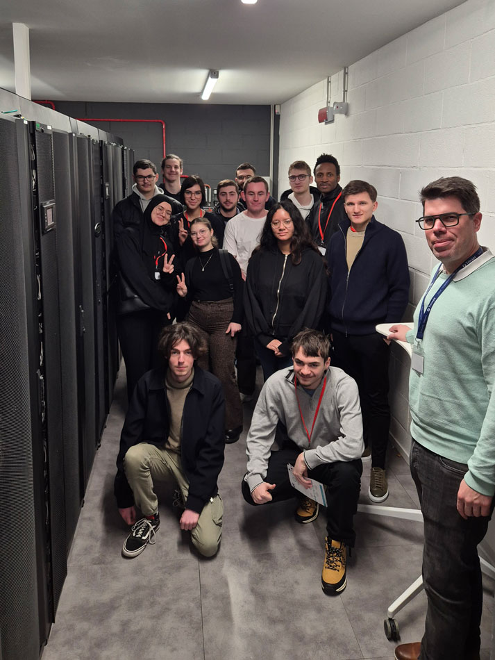 La visite s’est poursuivie dans un tout autre univers : celui du datacenter Extendo, un centre de données sécurisé 100 % français. Pendant deux heures, les étudiant·es ont exploré les coulisses d’une infrastructure numérique essentielle : stratégie commerciale, gestion énergétique, cybersécurité, redondance, continuité de service… Une occasion rare de voir concrètement comment sont hébergées et protégées les données que nous utilisons chaque jour.