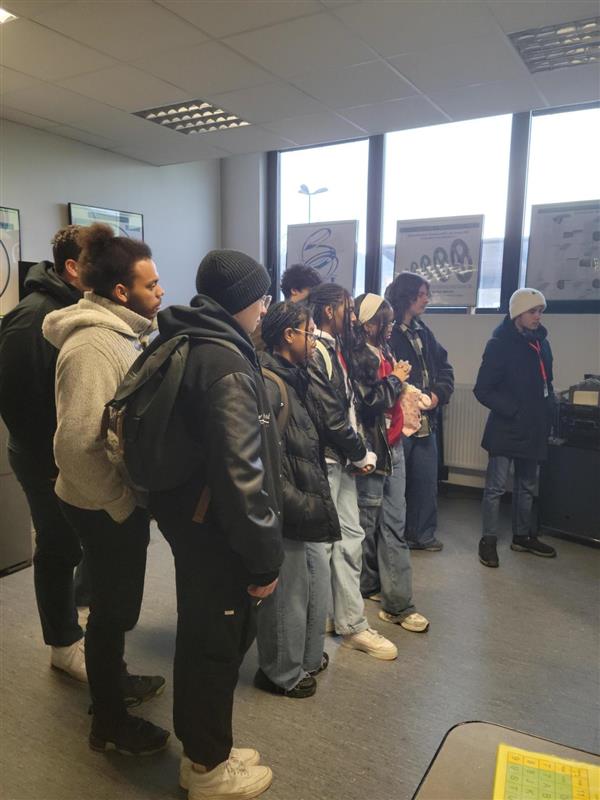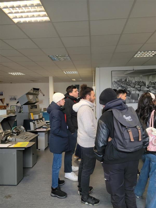 Première étape : le musée Bull et de la mécanographie. Là, les étudiant·es ont pu remonter le temps et découvrir les ancêtres de nos machines actuelles : cartes perforées, mécanismes impressionnants, machines volumineuses… Une plongée dans l’histoire d’une entreprise emblématique et dans les débuts de l’informatique moderne. Comprendre d’où viennent nos outils, c’est aussi mieux saisir leur évolution et les enjeux technologiques d’aujourd’hui.